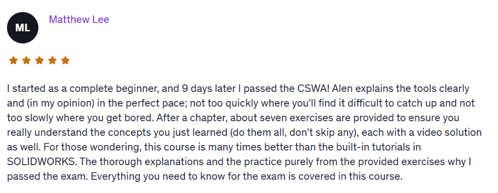 A step-by-step training designed to take you from uncertain beginner to confident, certified, hire-ready SolidWorks designer — even if you don’t know where to start, or you’ve failed to learn from YouTube or courses before.